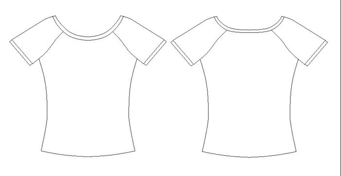 K sukni jsem ušila tričko z černého úpletu (97% viskoza, 3% elastan). Použila jsem upravený střih z Burdy 2/2010, mod.112 s raglánovým rukávem. Zkrátila jsem rukávy a zvětšila výstřih. Tričko jsem olemovala proužky z úpletu širokými 5cm a složenými po délce na polovinu. Proužky je nutné stříhat menší než je lemovaný obvod (asi -1 cm na 10cm obvodu podle pružnosti úpletu). Při šití se proužky musí napínat, aby se lem nevytahoval a hezky přilnul.